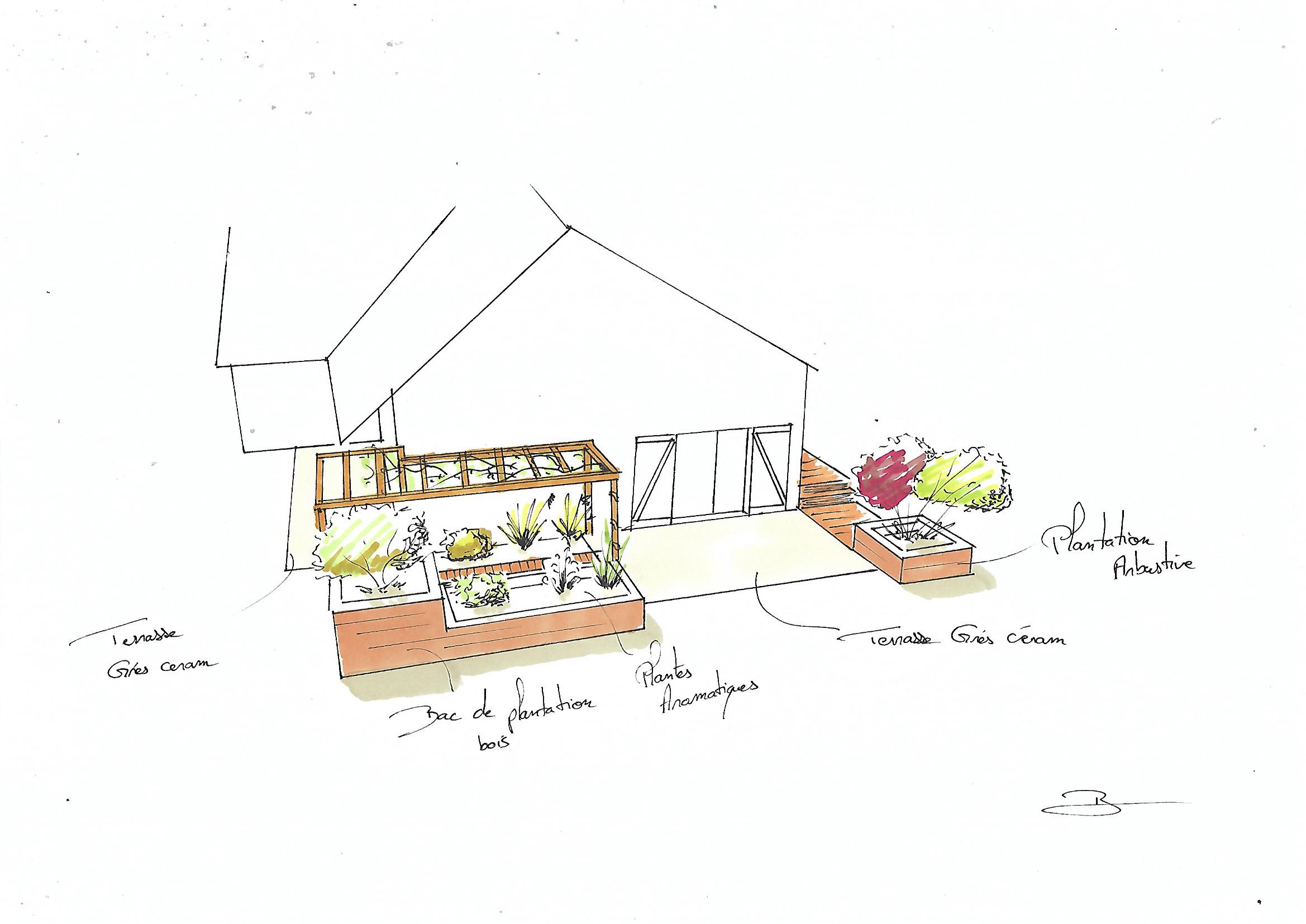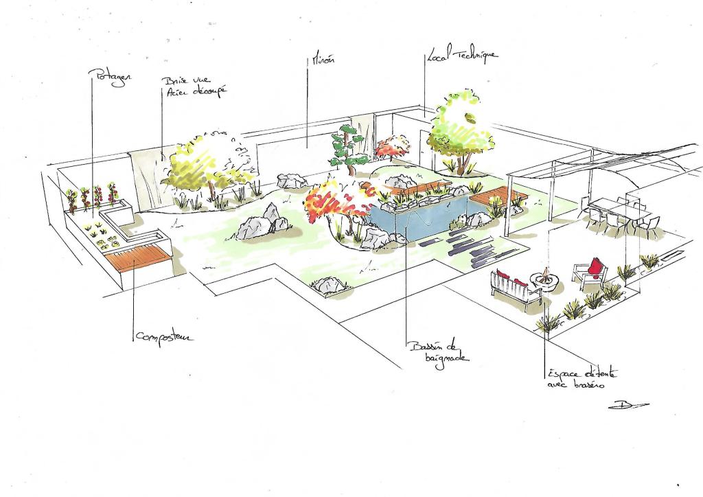 Avant chaque projet, la phase croquis permet à chacun de visualiser le devenir du jardin